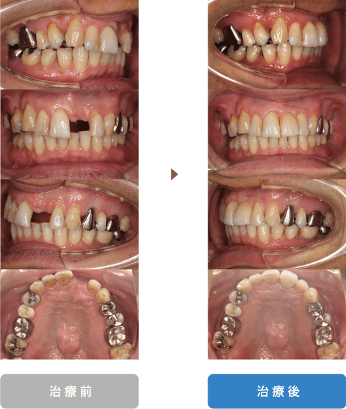 食べ物がうまく噛めない、発音しづらい、老けて見えてしまうなどのストレスを解消します。